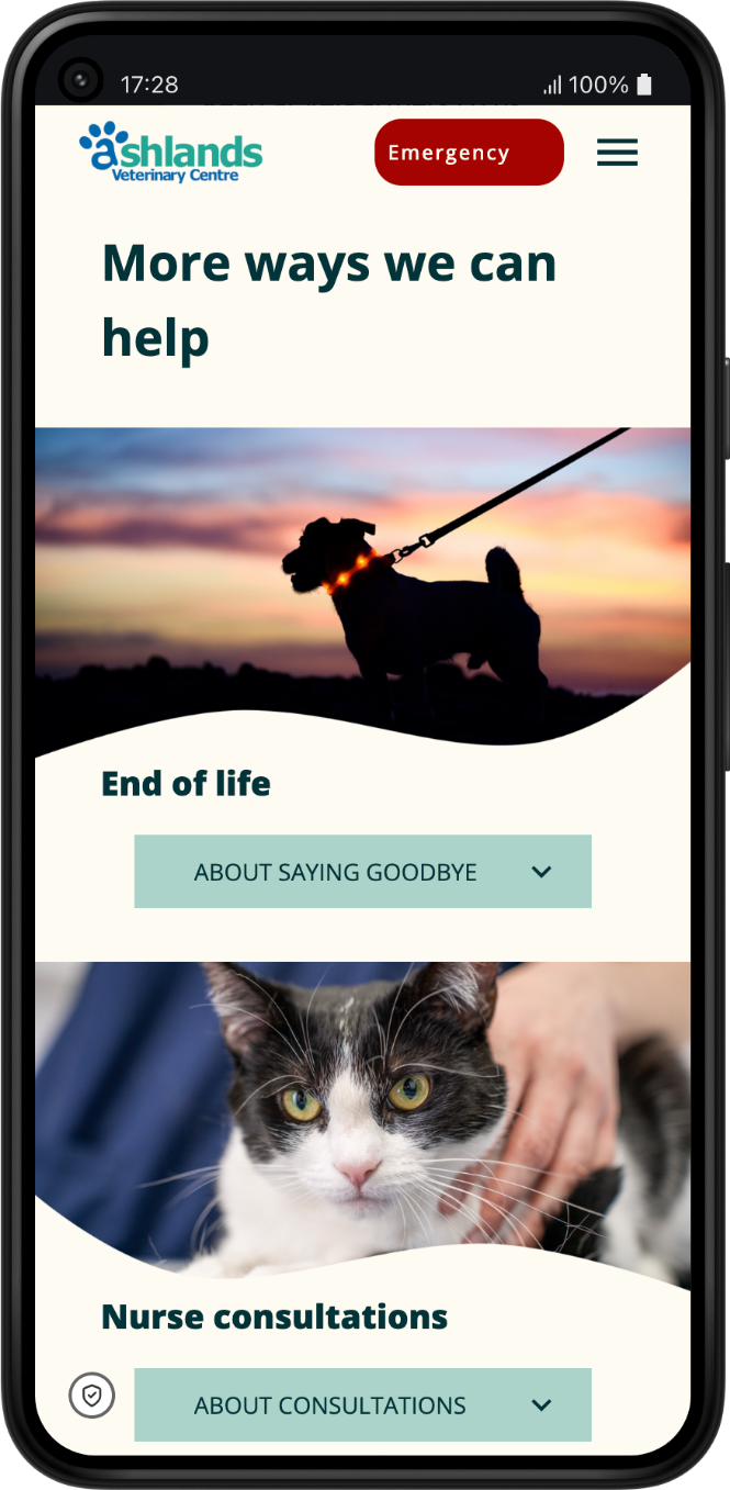 This project involved designing and building a new Pet Services teamplate for the VetPartners UK network of veterinary practice websites. The objective was to provide users with the right balance of information about each service, highlighting core services and USPs, and to strengthen the connection between practice websites and the corporate brand.